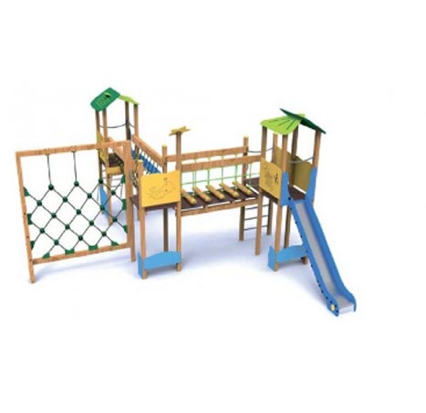 - Bois et bois stratifié traité en autoclave classe IV, panneau de coffrage, polyéthylène, acier peinte à la poudre, acier inoxydable et corde en polyester multifilament.