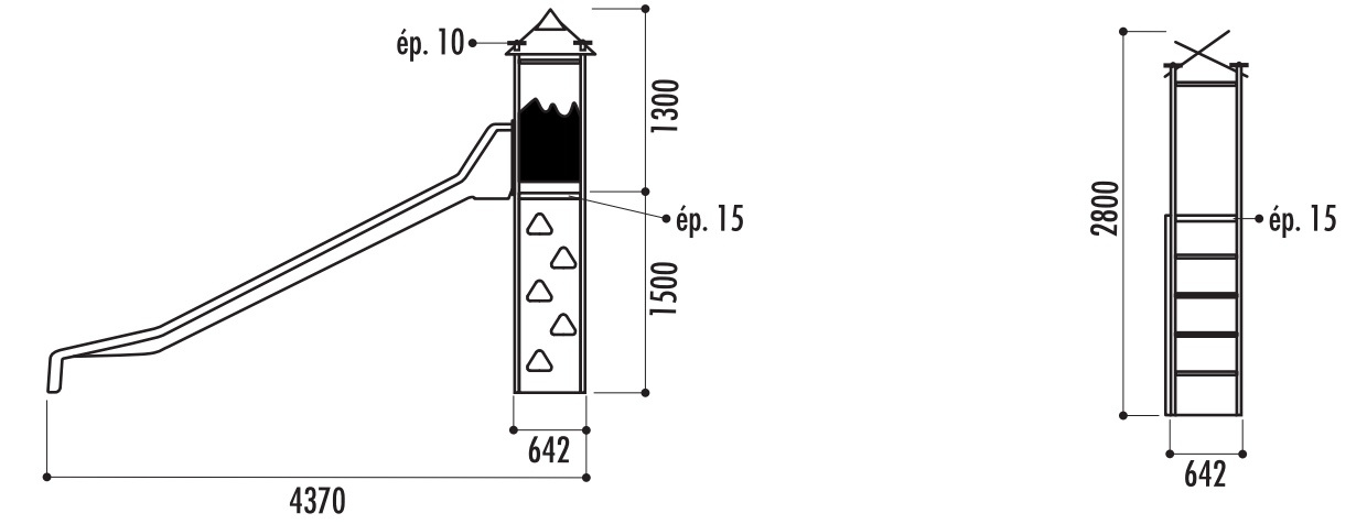 - Glissière en polyester, échelle verticale et mur à grimper