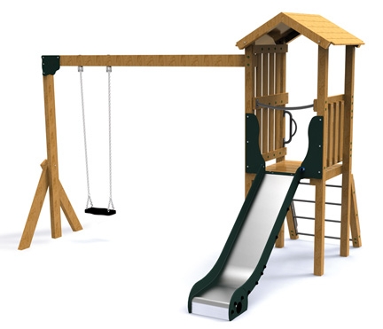 La structure est composée d’une tour avec toit à 2 pans, d’une échelle, d’une balançoire à siège plat et d’un toboggan, une combinaison adéquate pour les enfants.