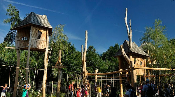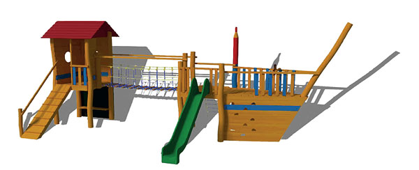 Une aire de jeux en bois assurent un espace convivial pour l’épanouissement des plus jeunes, leurs permettant de jouer individuellement ou en groupe et de développer leur motric