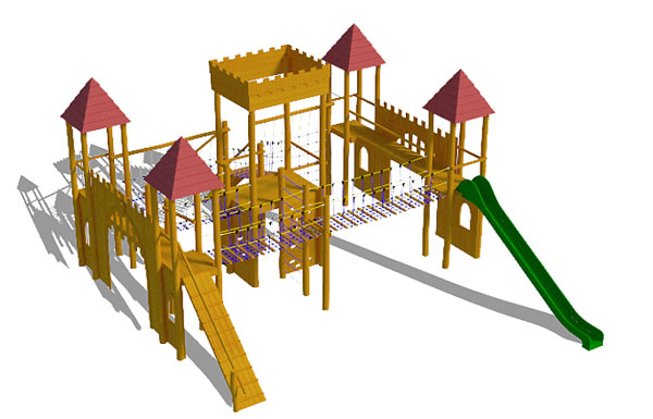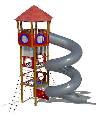 - Autres matériaux utilisés : Cordages type Filet à grimper âme d’acier revêtue d’une gaine de polyamide (POLYFIX) Toboggans en Fibre ou en Inox (en option)
