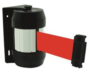 Cet enrouleur mural à sangle permet d'interdire facilement l'entrée d'une zone.
