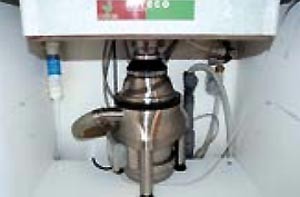 Installé sous un évier ménager, ce broyeur broie vos déchets alimentaires et évacue les éléments broyés dans un composteur.