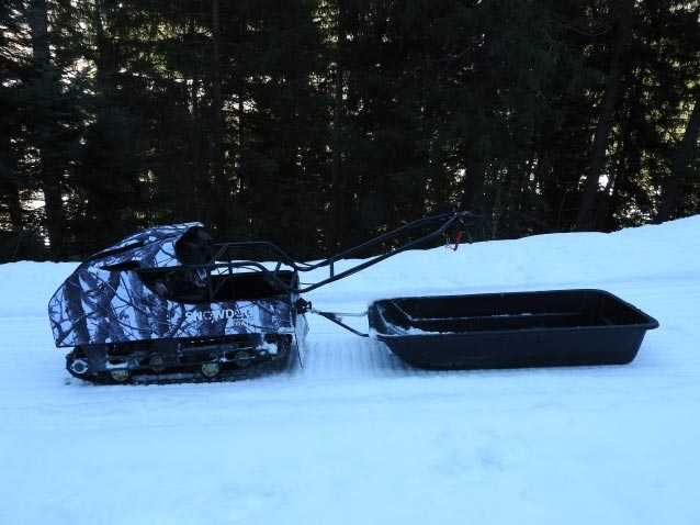 Poids maximal transportable sur la machine 45 kg, poids maximal tractable 150 kg (sur traîneau ou remorque)