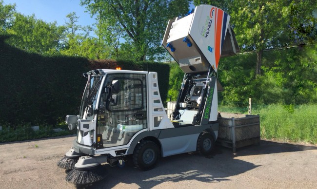 Il s'agit de la première et la seule balayeuse de voirie compacte au monde à alimentation et actionnement entièrement électriques.