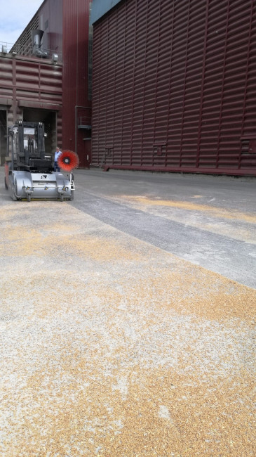 Cette balayeuse industrielle est idéale pour le nettoyage des surfaces en extérieur.