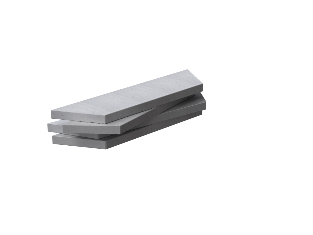 Elle se compose de 4 éléments biseautés à 60° identiques de format 250 x 60 x 12 prêts à être empilés selon votre imagination.