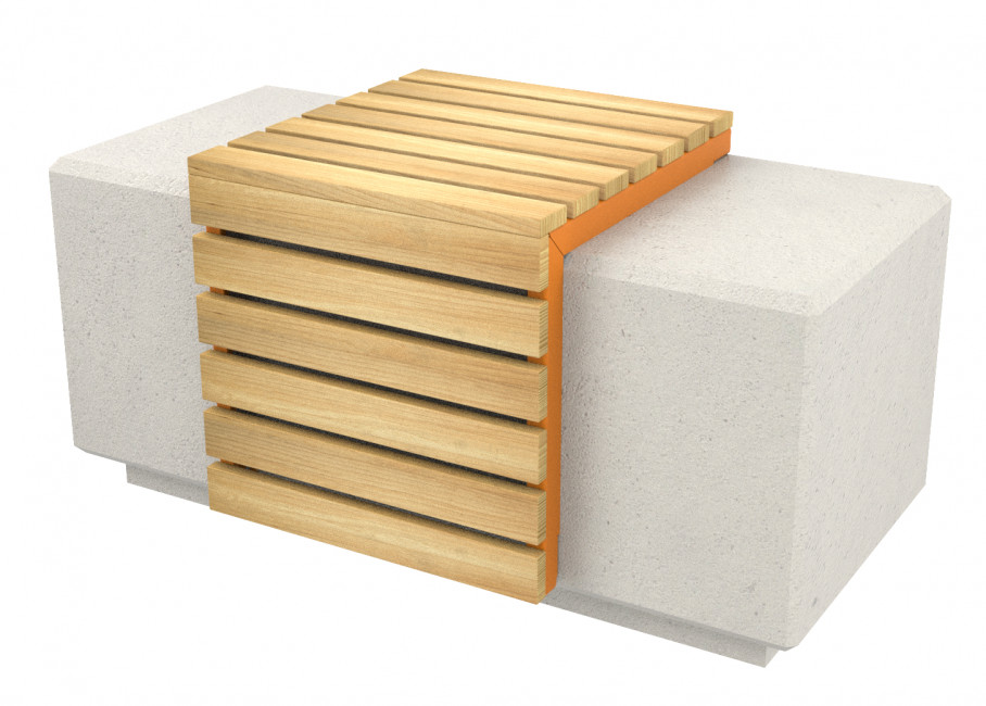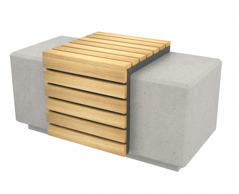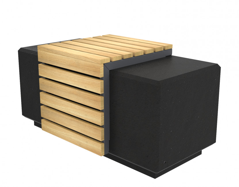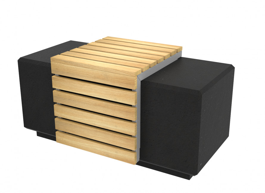 Elle combine une assise en bois de robinier avec une structure en béton pour créer un mobilier à la fois confortable et adapté aux usages intensifs.