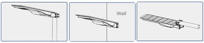 Le lampadaire offre trois solutions de fixation : montage mural, vertical ou horizontal.