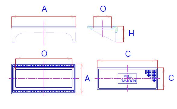 - A : Dimension du cadre : 850 x 400 mm
