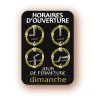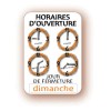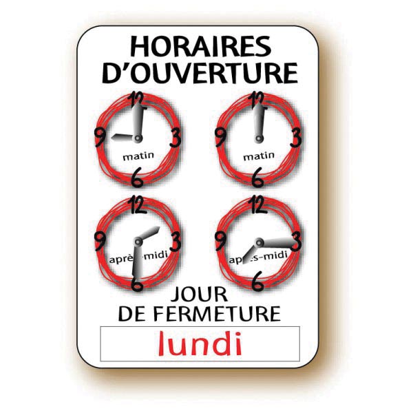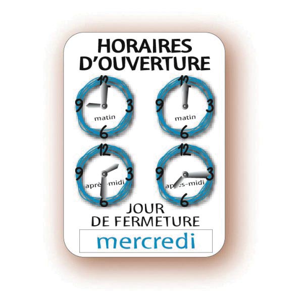 Ce panneau d'horaires tous commerces est conçu pour afficher les horaires d'ouverture et fermeture des magasins.