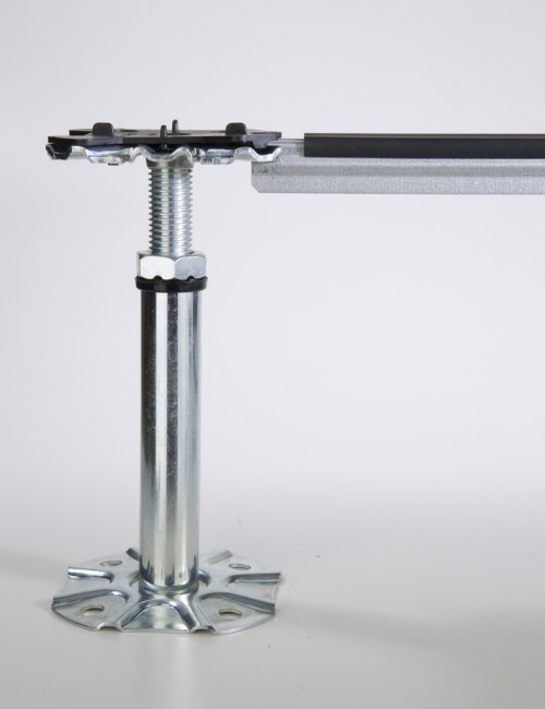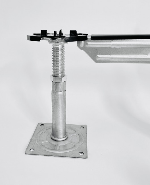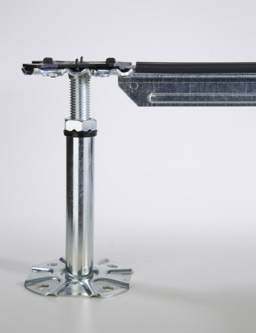 La structure de ce support pour plancher technique est conçue avec des matériaux de haute qualité, notamment des vérins et des traverses portantes en acier galvanisé.