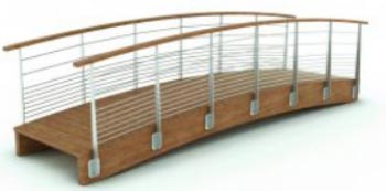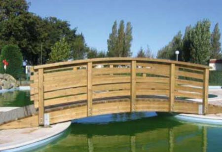 Pour les besoins d"un projet nous cherchons une passerelle en bois légèrement arquée, munies de deux gardes corps. Dimensions souhaitées : 4m x 1.20 à 1.50 .