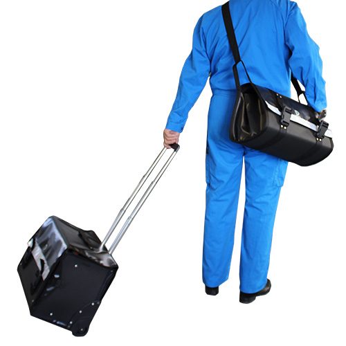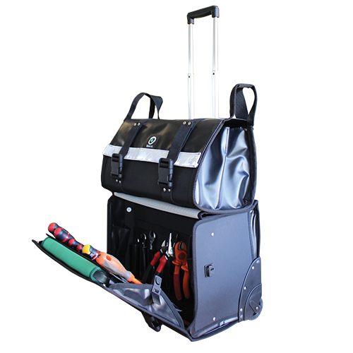 Ce sac à outils pour maintenance mobile se compose d’un sac à outils amovible et d’un grand rangement à roulettes qui vous assurent un maximum de rangement pour un minimum de poids.