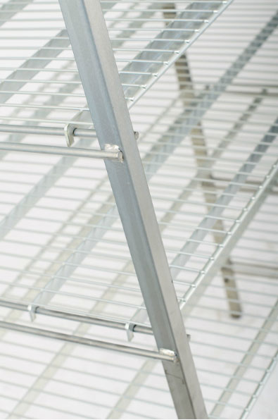 ► Huit (08) paires de montants. Poteaux Verticaux perforés (au moins 48 paires de perforation), donnant huit (08) échelles dont quatre (04) échelles intermédiaires et quatre (04) échelles extérieures. Réglage des lisses au pas de perforation.
