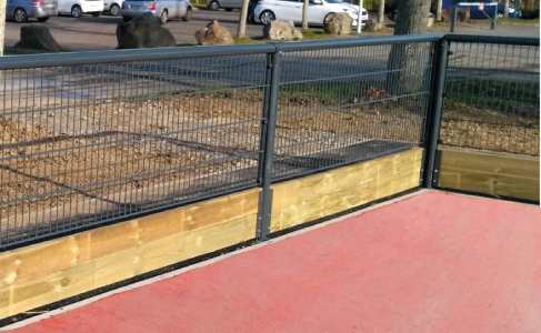 Panneaux double fils 8/6/8 ou 6/5/6 intégrés à la lisse et aux poteaux.