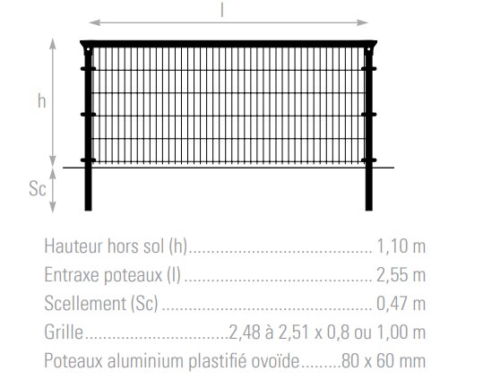 - Lisses et poteaux ovoïdes en aluminium plastifié