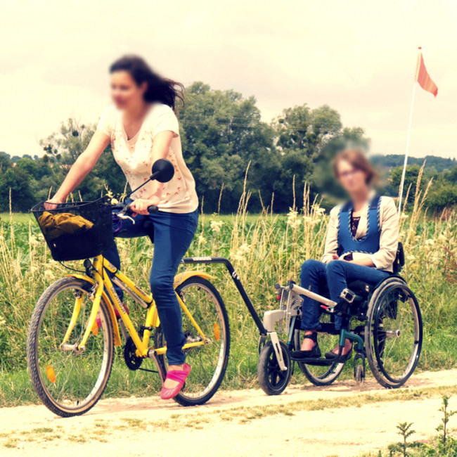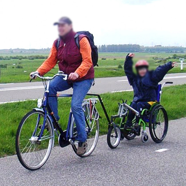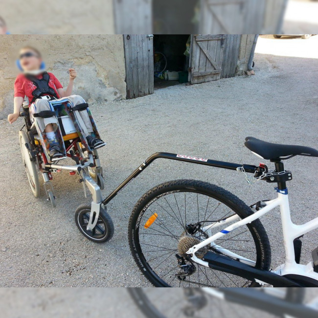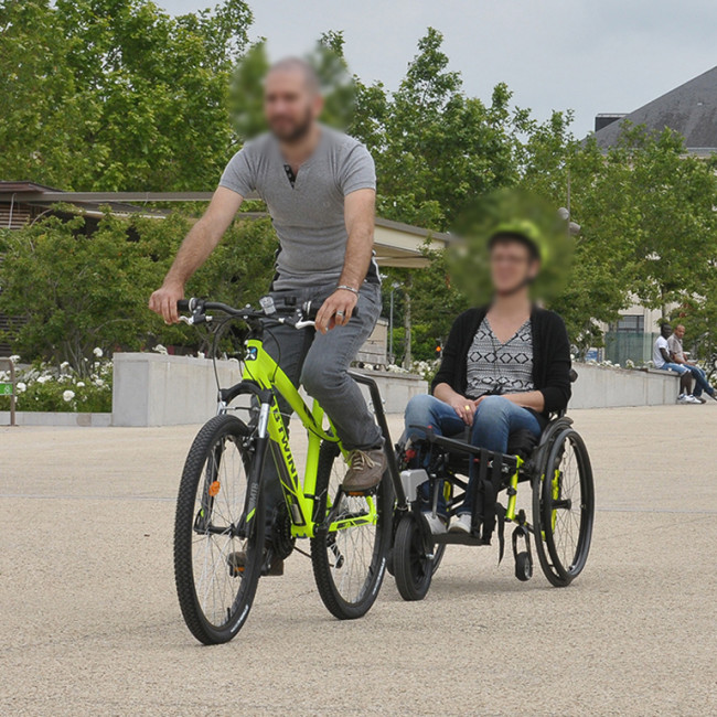 Cet accessoire s'installe en quelques minutes sans outil, et transforme votre fauteuil roulant en un fauteuil-remorque. Pas besoin de faire un transfer, ni manipulation inconfortable pour la personne en fauteuil. Et une fois la balade en vélo terminée, vous pouvez utiliser le fauteuil juste avec la 3ème roue.