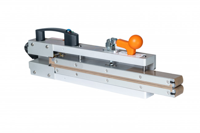 Pince PORTABLE 3 soudures conçue pour effectuer la sortie de matériel ou déchets d’une enceinte étanche par sac et / ou réaliser des soudures longitudinales pour confectionner des manches. (longeur de soudure maxi : 420mm)