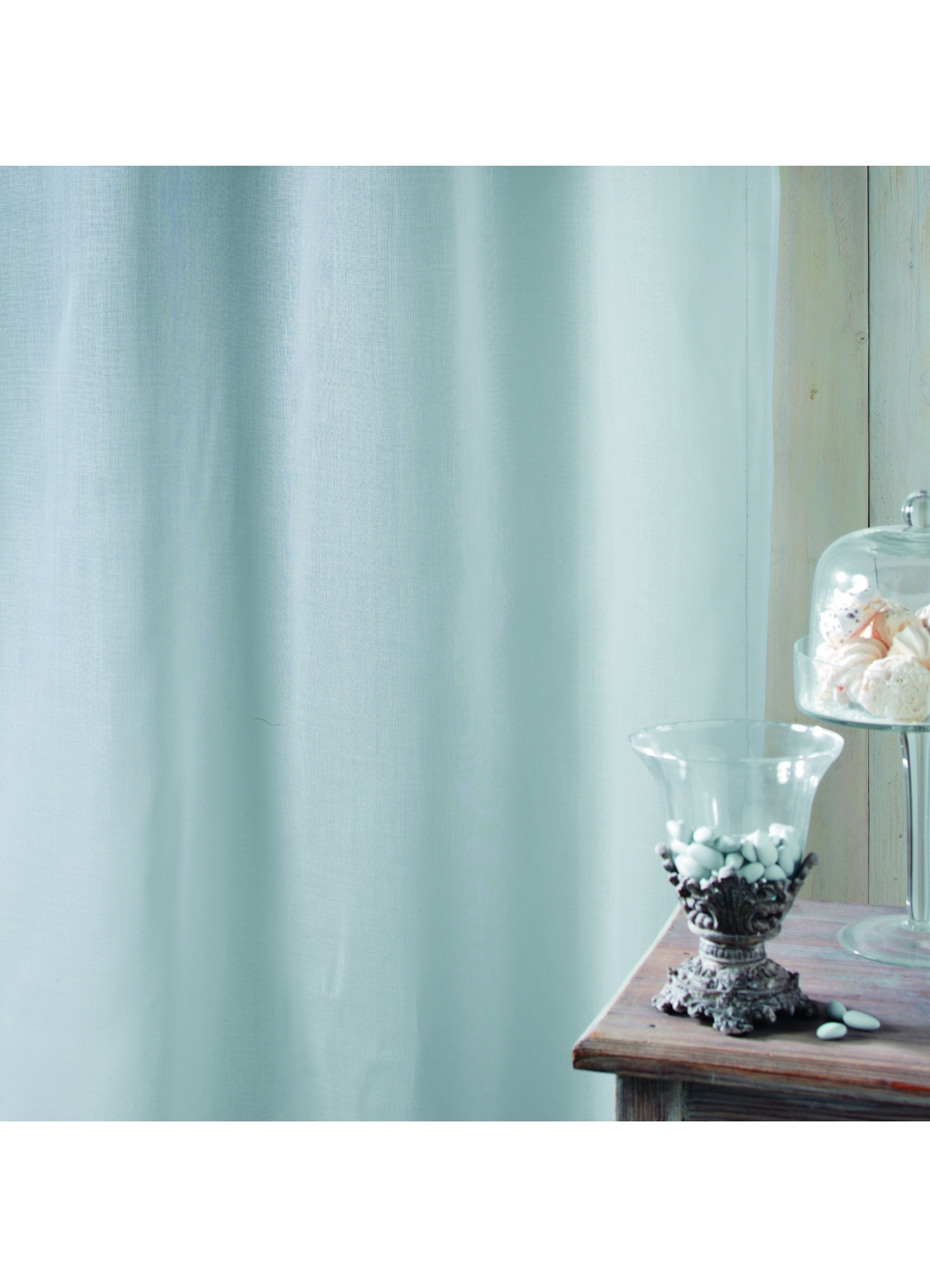 Ce rideau voilage prêt à poser est en tissus Etamine certifié Non Feu M1. Le tissu est lisse et uni. Idéal pour les restaurants, bars, salles municipales ou autres.