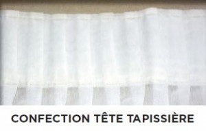 Tête tapissière (voilages) : basée sur une ampleur minimale de 1.60 (par exemple, ampleur du rideau 160 cm pour une longueur de tringle de 100 cm). Ourlet bas et ourlets côtés.