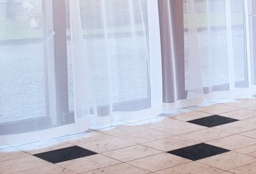 Ce voilage uni ou strié non feu est un voile transparent moderne destiné aux :