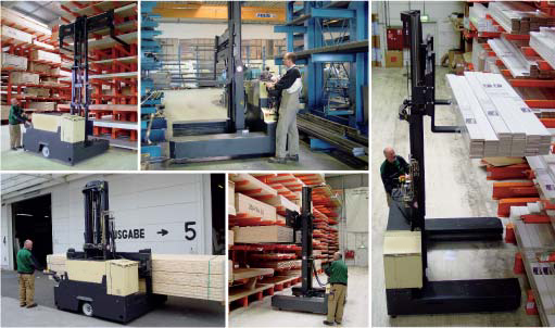 - Réduction de la largeur d'allée par système de guidage 100 mm d'écart de securité de chaque côté