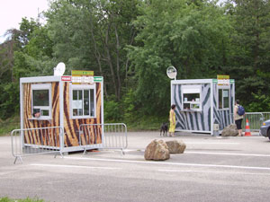 Pour une opération sur Rouen, je souhaite une guerite pour gardien à positionner dans un angle, de dimension 1.5mx1.5m, avec 2 fenêtres et une porte.
