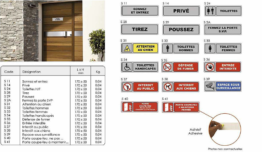 Il s'agit d'une gamme de signalétiques économiques à coller sur les surfaces vitrées ou lisses.