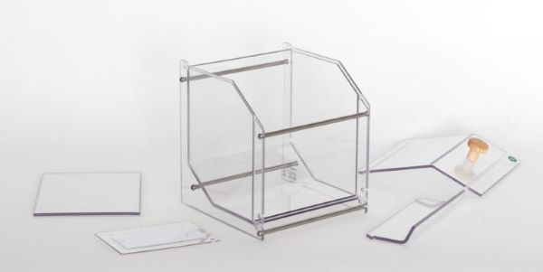 Constitué de pièces extractibles ou démontables, en allant du couvercle à la façade avant, jusqu'au repose-pelle et au support-étiquette, l'entretien du présentoir est simplifié.