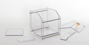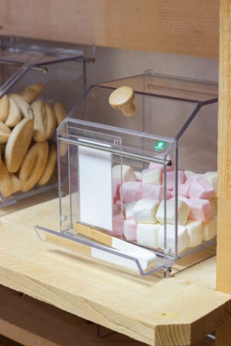 Ce présentoir pour produits en vrac est conçu pour le stockage et la vente de produits alimentaires et/ou de produits d'appels comme des petits jouets ou des goodies.