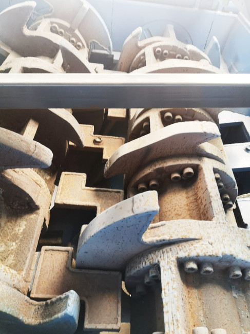 Unité de broyage à 2 rotors de diamètre 660 mm et long de 2260 mm avec arbres acier surdimensionnés et outils de grande capacité broyant dans les 2 sens et remplaçables (fixation par vissage).