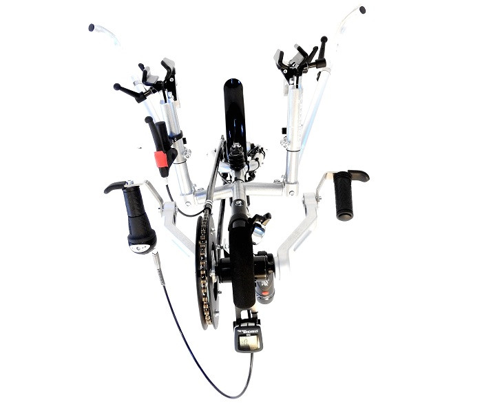 Avec sa colonne de direction et ses bras de fixation spécialement conçus pour les personnes de petite taille, ce handbike assure un ajustement parfait.