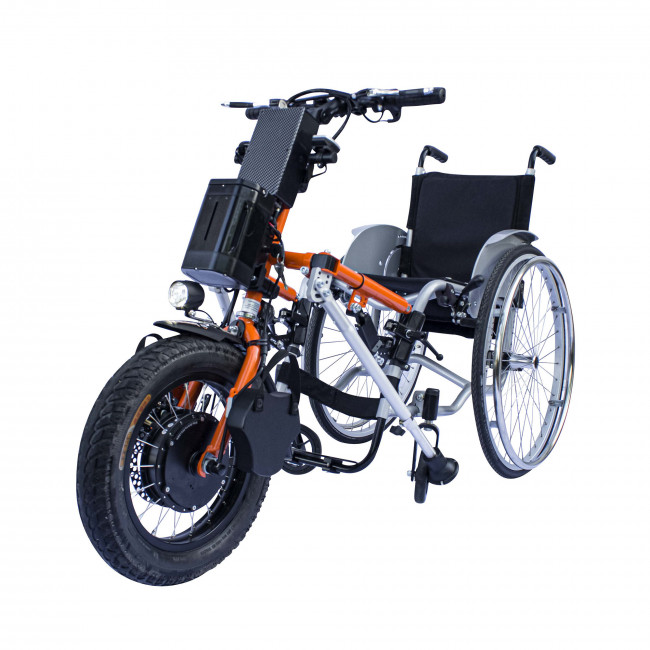En équipant votre fauteuil d'une roue motorisée, vous transformez instantanément votre mode de transport en un véhicule tout-terrain électrique, offrant ainsi une liberté de mouvement inégalée.