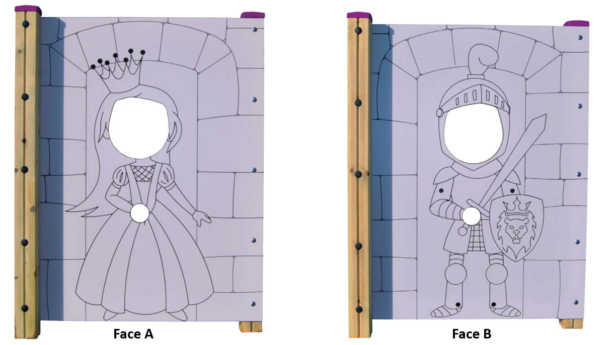 Ce jeu d'extérieur princesse et chevalier est composé de deux façades : princesse et chevalier.