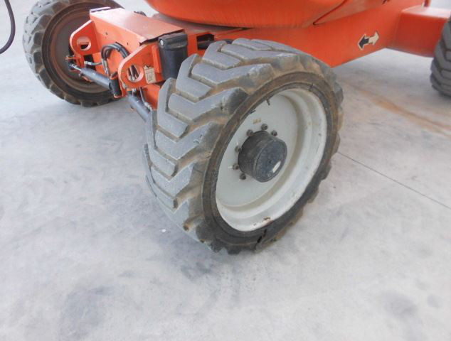 La nacelle élévatrice appartient à la catégorie automotrice, ce qui signifie qu'elle est équipée de roues tout-terrain robustes.
