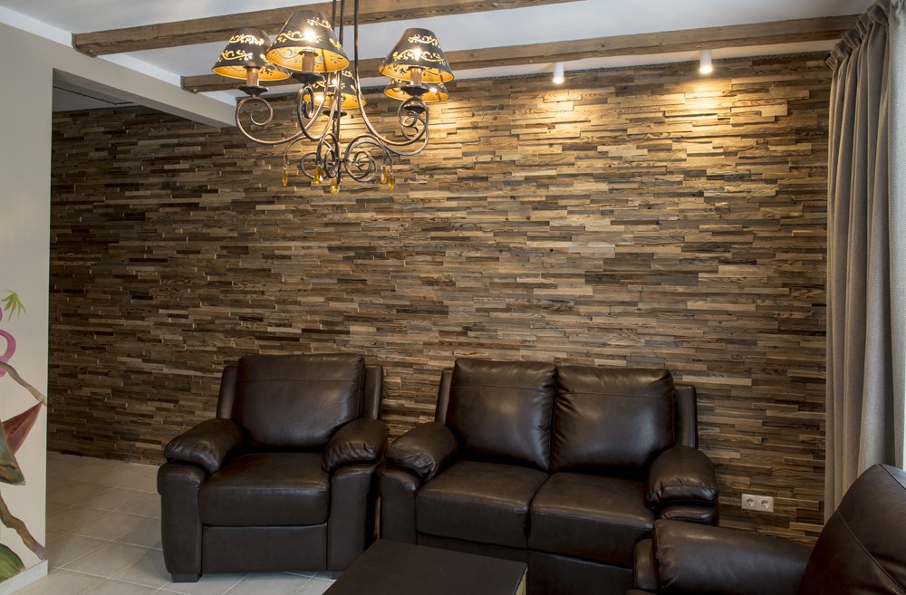 - Ce revêtement mural en bois massif est fait de morceaux de bois sur plusieurs niveaux, ce parement en bois massif est très facile à installer, vendu par carton de un mètre carré.