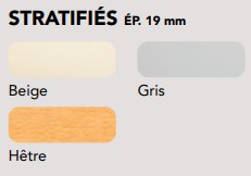 Standard :Blanc (RAL 9016) / Erable / Gris / Chêne Autres coloris disponibles sur demande