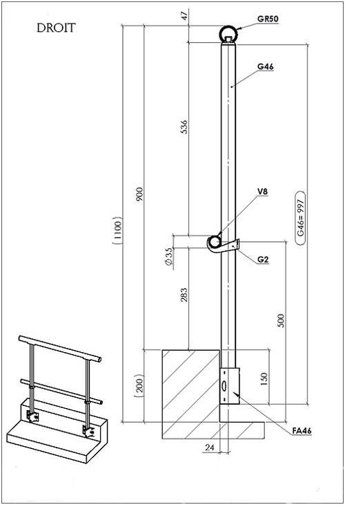 - Types de garde-corps disponibles : Droit, incliné et cintré