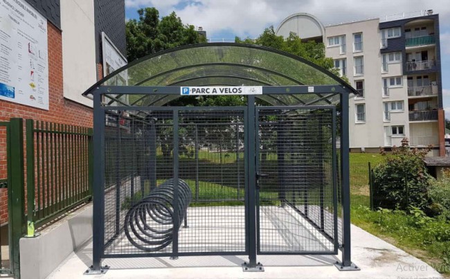 Il s'agit d'un range vélos fermé et collectif d'une ossature résistante en acier laqué et doté d'une toiture avec arceaux aluminium en plexi haute résistance.