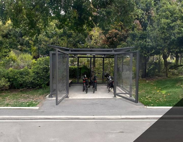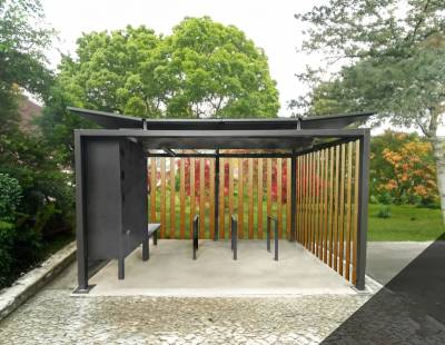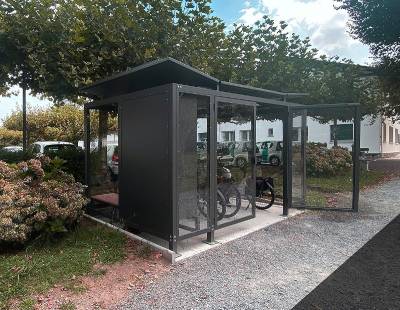 Fabriqué en France, cet abri vélo fonctionne sans raccordement au réseau électrique.