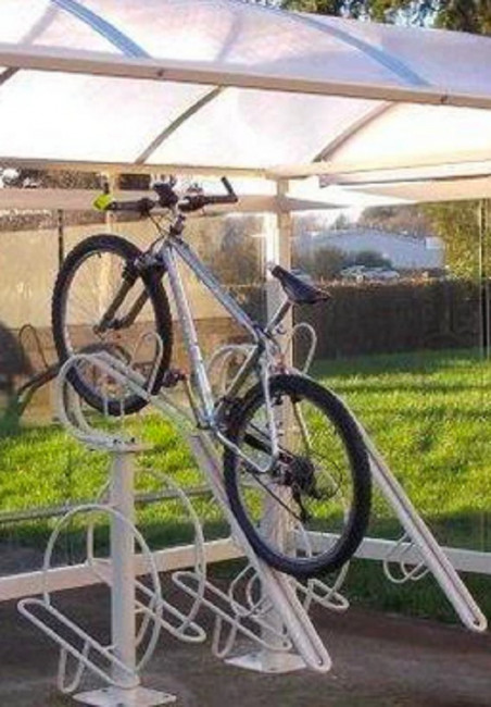 Une bande de roulement aide au placement et au retrait des vélos sans effort, et une barre d'ancrage située au sommet offre des points de verrouillage supplémentaires.