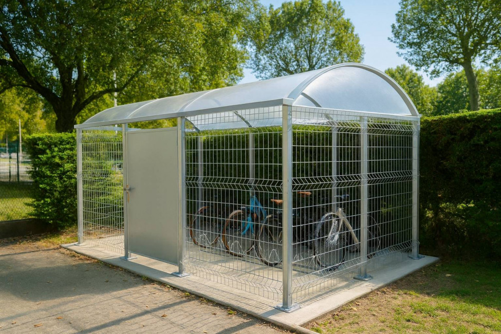 Notre abri grillagé pour deux-roues est idéal pour les zones publiques, les espaces de travail ou les résidences collectives.