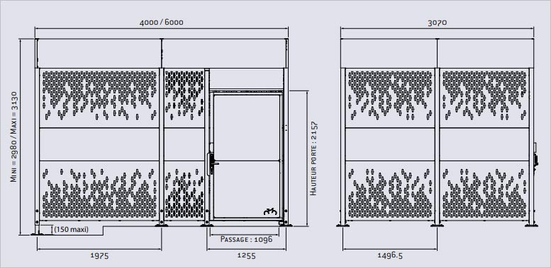 Il offre une profondeur de 3070 mm, garantissant une capacité optimale pour les vélos tout en permettant une circulation aisée autour de l'abri.