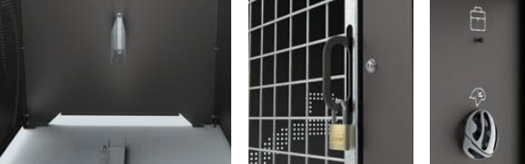 Les portes sont composées d’un grillage carré en fil de 5 mm de diamètre, permettant de visualiser l’intérieur sans ouvrir le box.