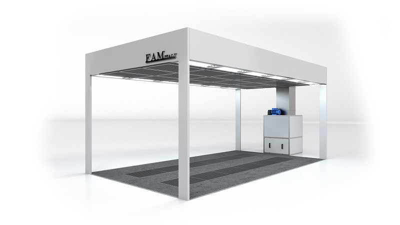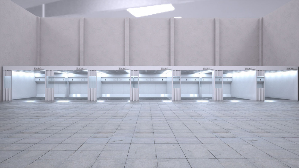 L'aire de préparation peinture à ventilation verticale permet la réparation des véhicules avant de passer dans la cabine de peinture.