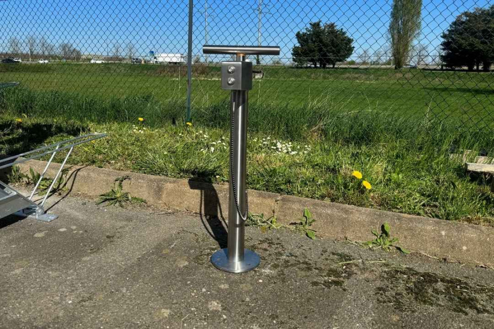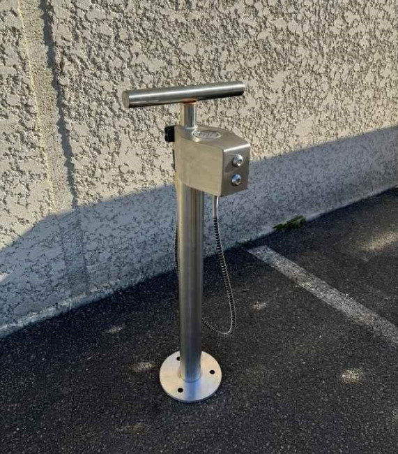 Fixée au sol avec visserie renforcée, cette pompe reste stable et sécurisée, exclusive tout vol et garantissant un service fiable dans les espaces publics.