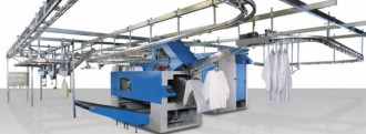 Pour le déplacement de grandes quantités de linge en cintres, nous vous présentons notre convoyeur de cintres.