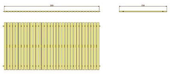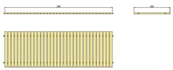 Longueur : 300 cm Largeur : 100 ou 150 cm Lames : 7 x 3 cm