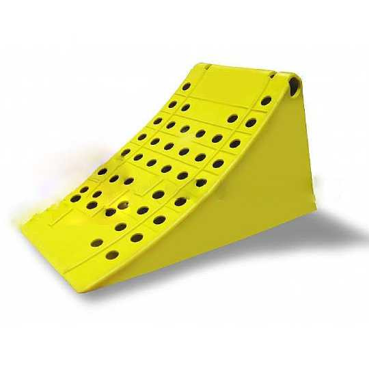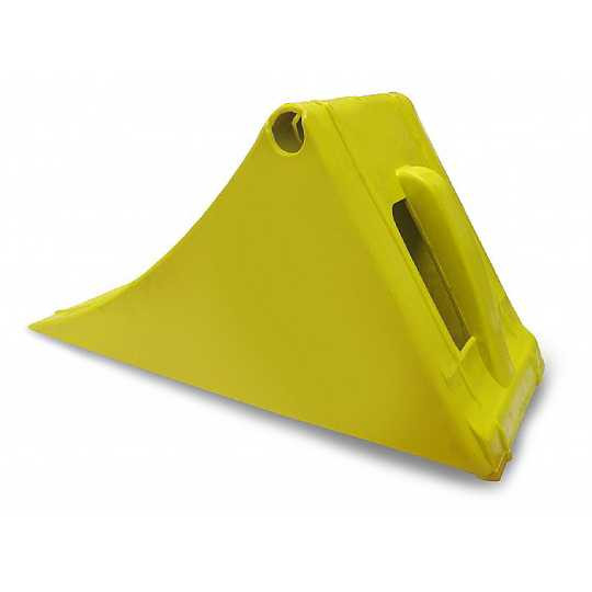 La cale de roue en plastique jaune est un accessoire essentiel pour assurer la sécurité des camions et poids-lourds lorsqu'ils sont stationnés ou en cours de chargement.